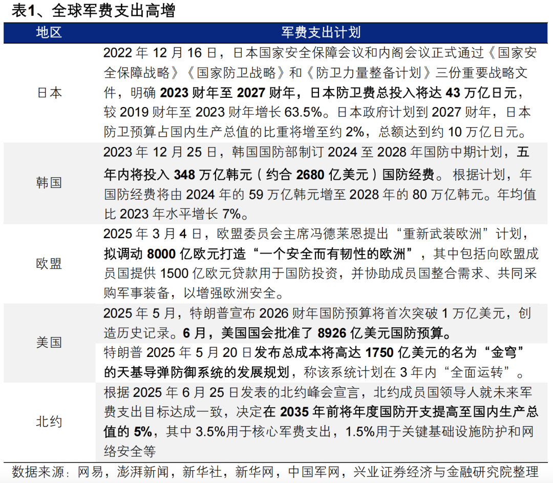 对外,当前世界面临百年未有之大变局,全球军备竞赛拉开帷幕。随着我国武器在世界持续展现强大竞争力,中国在国际军贸中的市场空间有望进一步打开。2月以来,特朗普政府关税战升级,印巴、中东等全球地缘政治紧张局势加剧,各国政府均在提高对国家安全的重视程度,全球军备竞赛序幕正在拉开。随着去年末我国六代机亮相、3月我国军舰绕澳大利亚环行展示,到二季度的台海联合演练、歼10CE在印巴冲突中大放光彩,中国武器持续展现全球竞争力。地缘冲突背景下国家安全牵引长期军贸需求,中国在国际军贸中的市场空间有望进一步打开。