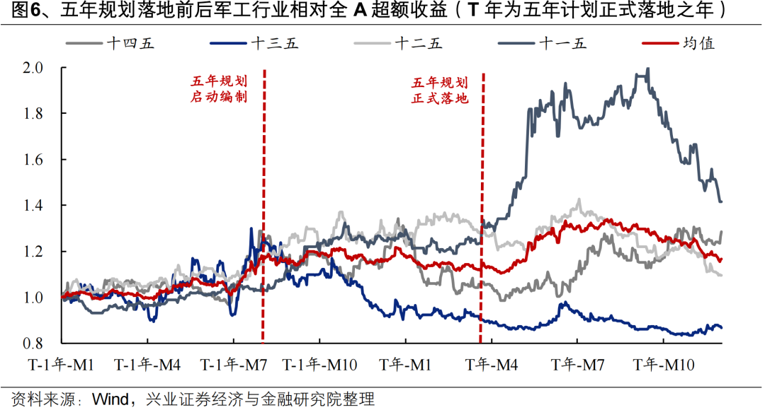 对内,军工作为强计划性行业,五年规划对于行业景气和市场预期有着重要影响。参考历史经验,从五年规划启动编制,到正式落地的第一年,军工行业的超额收益通常较为明显。“十五五”时期作为大国博弈、全球竞争力提升的关键阶段,对于军工表述的战略性高度显著提升。随着军队建设“十四五”规划执行已进入能力集成交付关键期、叠加“十五五”规划编制推进、落地,行业未来三到五年的发展指引将逐渐清晰,前期积压的下游需求有望迎来大幅释放。随着新一轮订单周期开启,有望推动行业整体景气复苏。